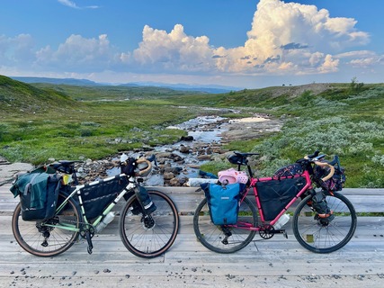 "Am 27. Juni 2025 starteten wir auf unseren zwei Fahrrädern – eins davon komplett selbst gebaut – von Eberswalde aus Richtung Norden. Durch Mecklenburg-Vorpommern bis Rostock, von Südschweden bis Finnland und durch Norwegen bis zum Nordkap planten wir grob eine ca. 3.000 Kilometer lange Route. Ohne konkrete Pläne hinsichtlich Verpflegung, Schlafplätze und Waschgelegenheiten fühlten wir uns frei wie zwei Zugvögel – und erreichten nach 41 Tagen ohne größere Zwischenfälle, aber mit unendlich vielen wunderbaren Eindrücken, neuen Freund:innen und Erinnerungen, unser Ziel. Von unterwegs aus konnten wir Freunde und Familie mit einem Travelblog auf dem Laufenden halten und hoffen, mit diesem Bildervortrag weitere Zugvögel zum Losfliegen motivieren zu können. Denn nichts ist schöner als die Welt auf dem Rad zu erfahren."