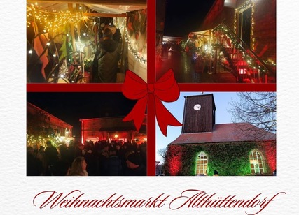 Am ersten Adventssonntag wird in der Gemeinde Althüttendorf die Adventszeit mit einem stimmungsvollen Weihnachtsmarkt eingeläutet und der Platz hinter der Kirche in festlichen Glanz verwandelt. Eröffnet wird der Markt mit den Althüttendorfer Jagdhornbläserrn. Weihnachtliche Klänge, der Duft von warmen Leckereien und heißen Getränken, gemütliches Licht, fröhliche Gespräche und Feuerschalen zum Wärmen laden zum Verweilen ein. In der Kirche findet ein festliches Konzert statt und im Anschluß sorgen die Kinder der Kita mit ihrem Gesang für herzerwärmende Momente. Die kleinen Besucher können sich auf tolle Spiele, Kinderbasteln und den Weihnachtsmann freuen. Es wird eine Wunschzettelbox geben in der die Wunschzettel für den Weihnachtsmann hinterlassen werden können. Regionale Stände bieten liebevoll gestaltete, handgefertigte Weihnachtsgeschenke an, die erworben werden können.