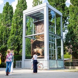 Auf dem 3,30 Meter hohen Kunstwerk vor dem Neuen Rathaus stellt der Künstler Horst Engelhardt Ereignisse aus fast 800 Jahren …
