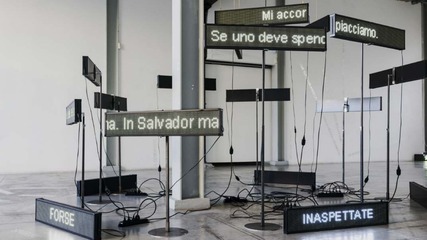 Aus all diesen Sätzen und Begriffen komponierte Novarese eine narrative Kartographie der Stadt. Diese ist nun als Installation in der Ausstellung präsentiert, das Publikum kann frei eine Leserichtung wählen, eigene Assoziationen aus den Fragmenten und letztlich eine Narration entwickeln.
