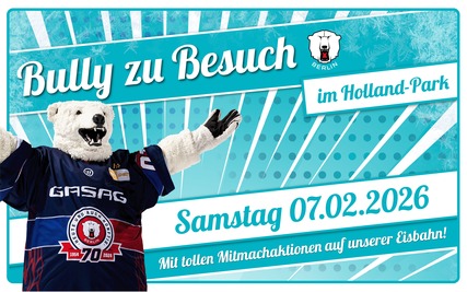 Am 07.02.2026 kommt Bully von den Eisbären Berlin zu uns auf die Eisbahn im Holland-Park!