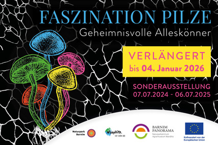 Erkunden Sie ab dem 7. Juli im Barnim Panorama die faszinierende Welt der Pilze. Entdecken Sie ihre erstaunlichen Formen, Eigenschaften und ihr Potenzial, unsere Umwelt nachhaltig zu schützen.